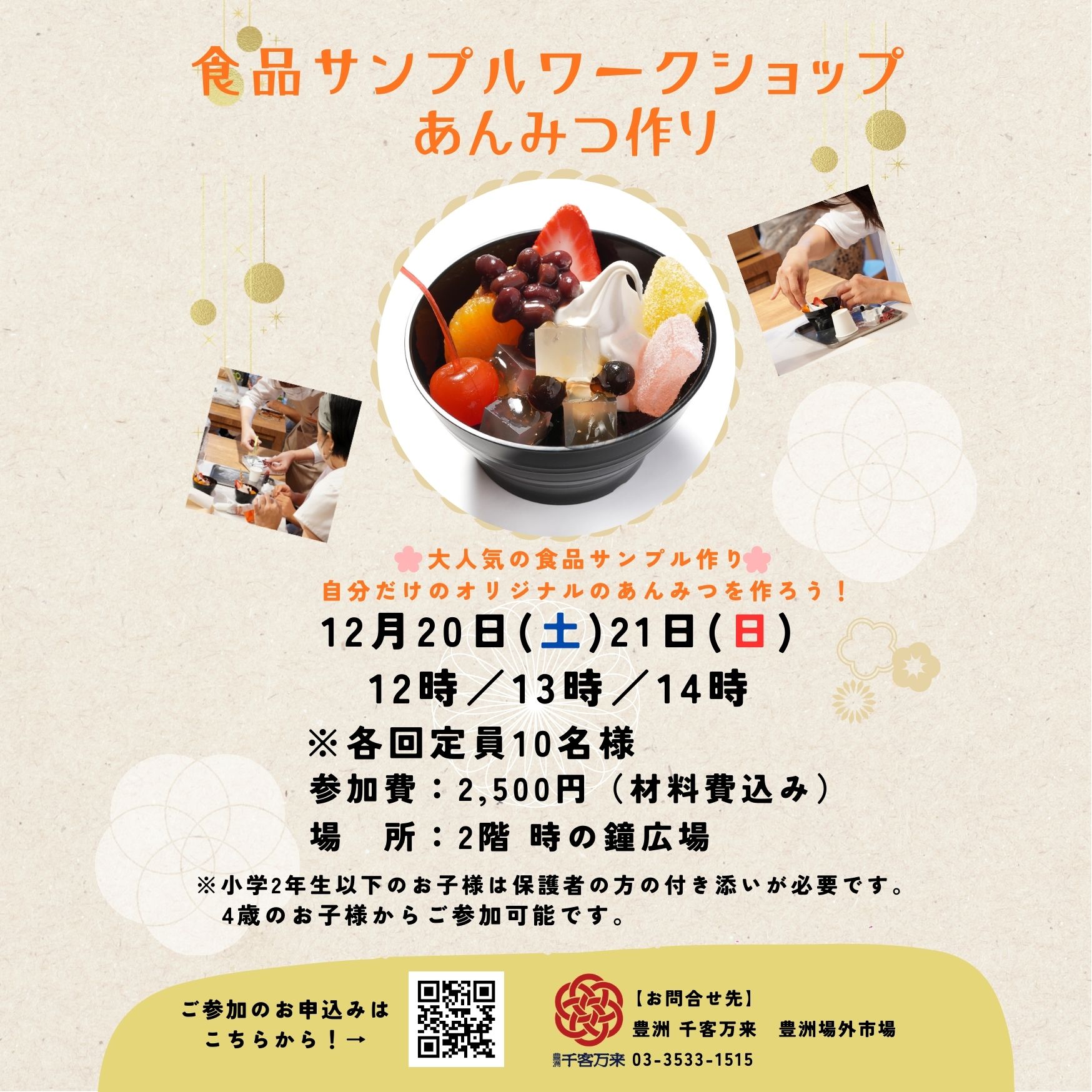 大人気の「食品サンプルワークショップ あんみつ作り 」を開催します!