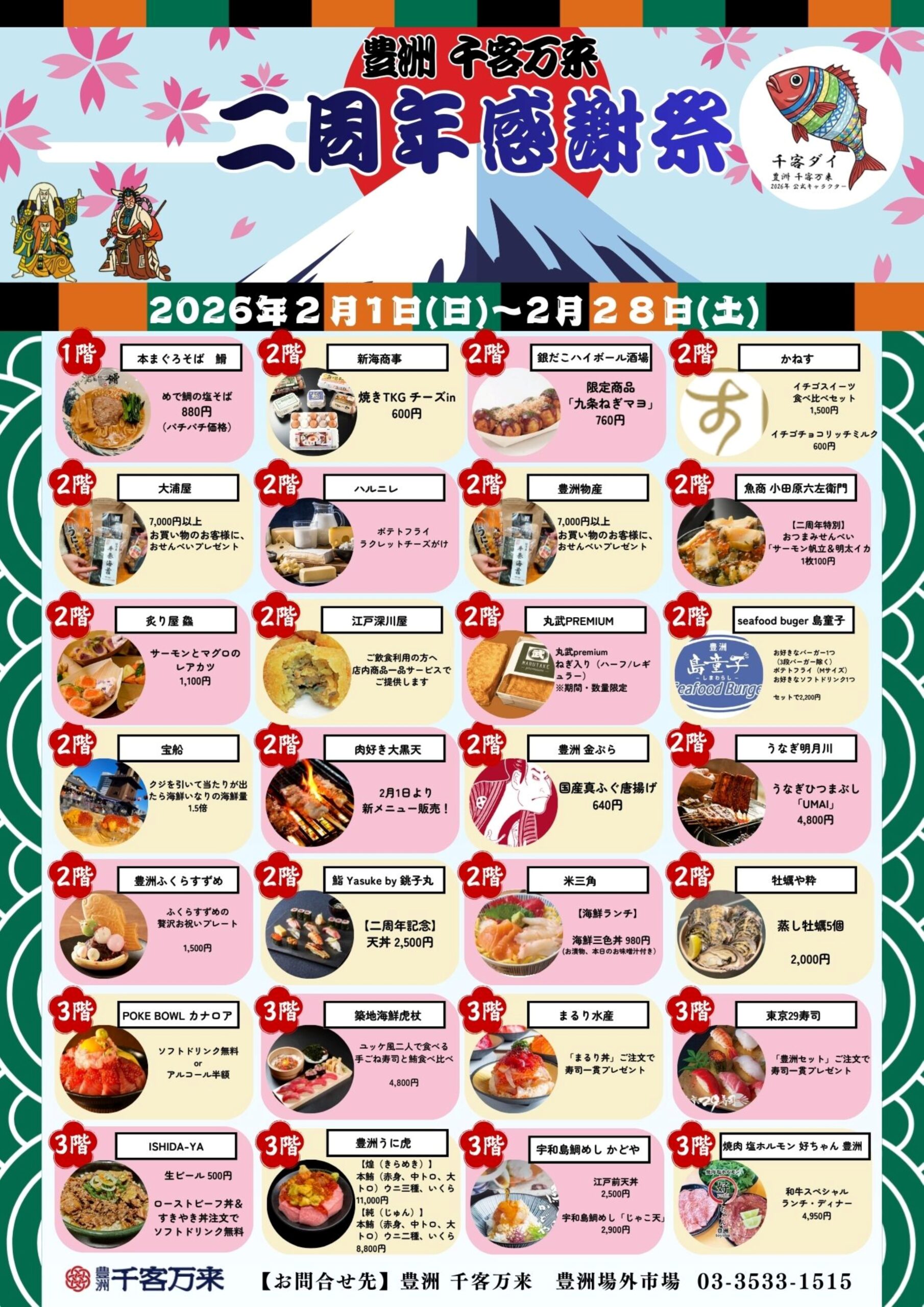 豊洲 千客万来は、2026年2月1日(日)に開業2周年を迎えます。