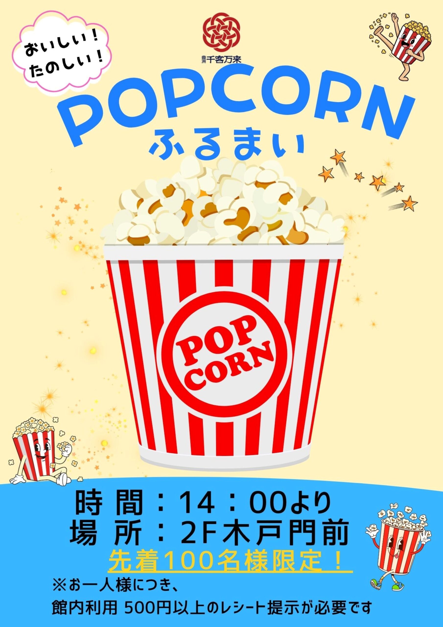千客万来では、ポップコーンふるまいイベントを開催いたします!