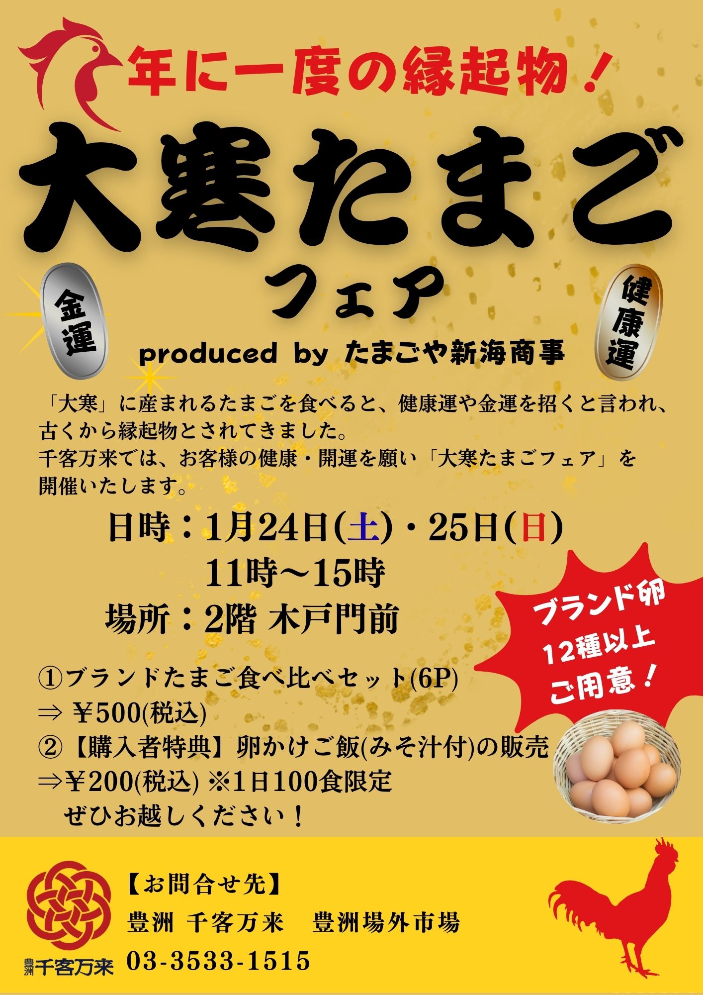 千客万来では、お客様の健康・開運を願い「大寒たまごフェア」を開催いたします。