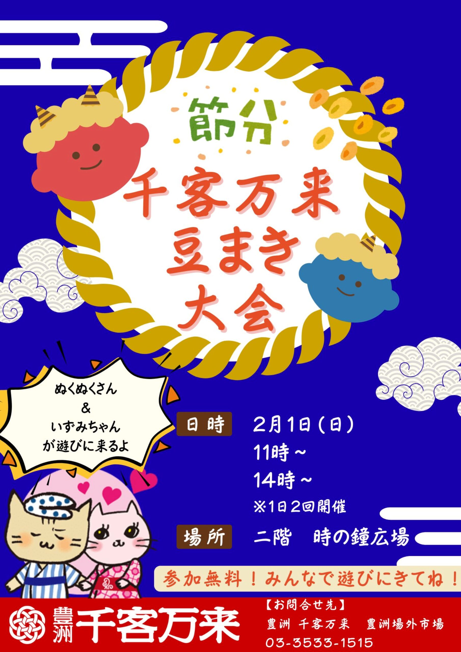 節分の日は、豊洲 千客万来でみんな一緒に豆まき!
