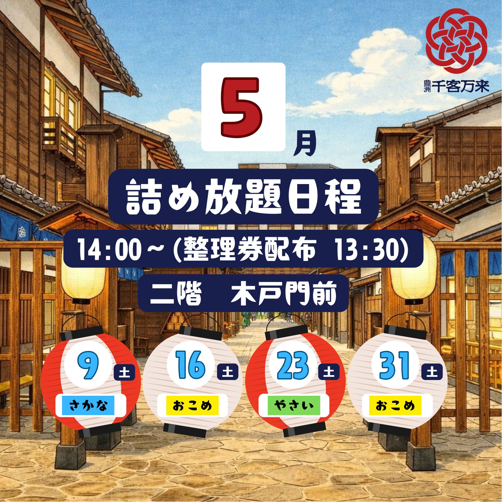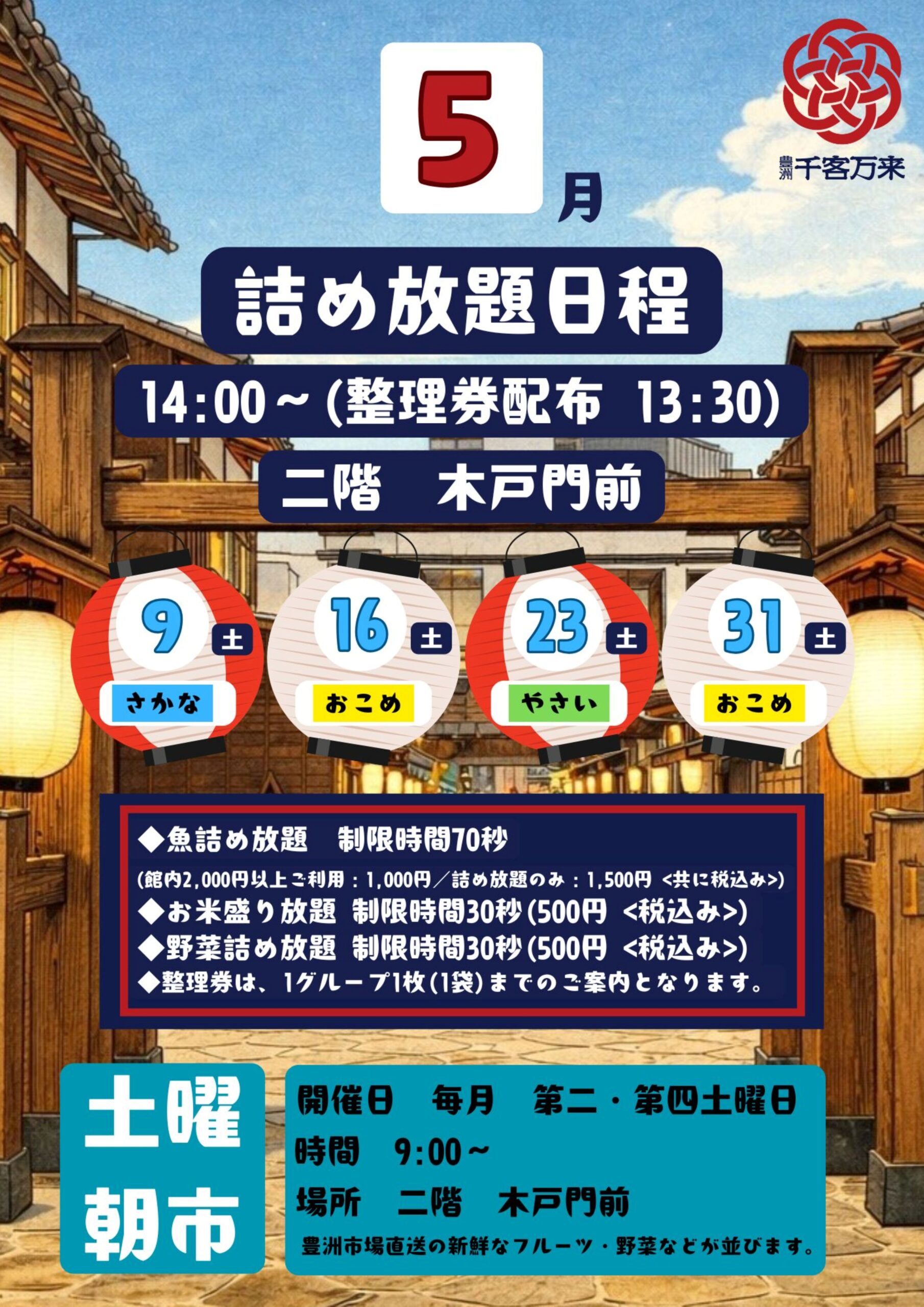 2026年5月「詰め放題イベント」スケジュールが決定いたしましたのでお知らせいたします。