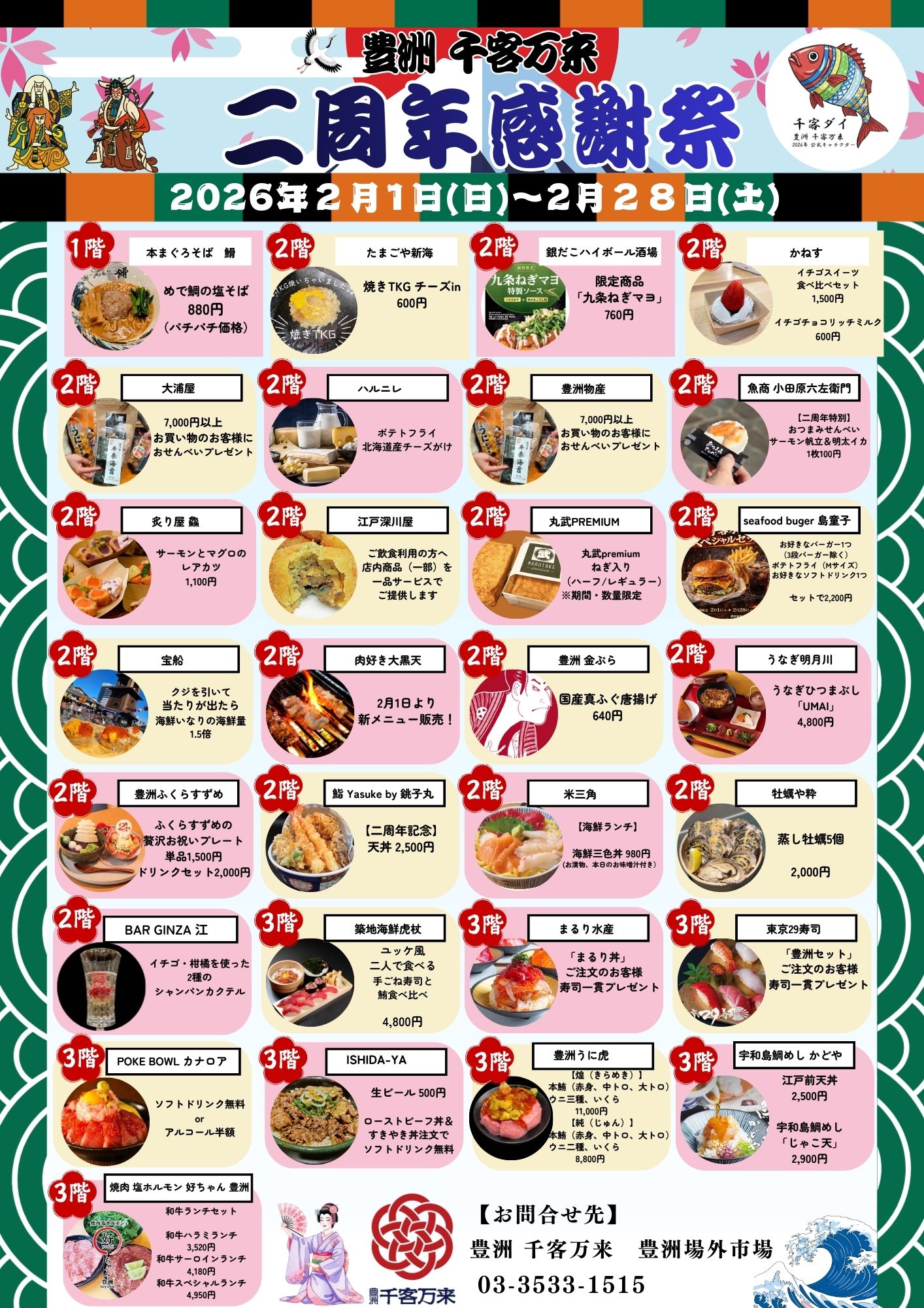 豊洲 千客万来は、2026年2月1日(日)に開業2周年を迎えます。