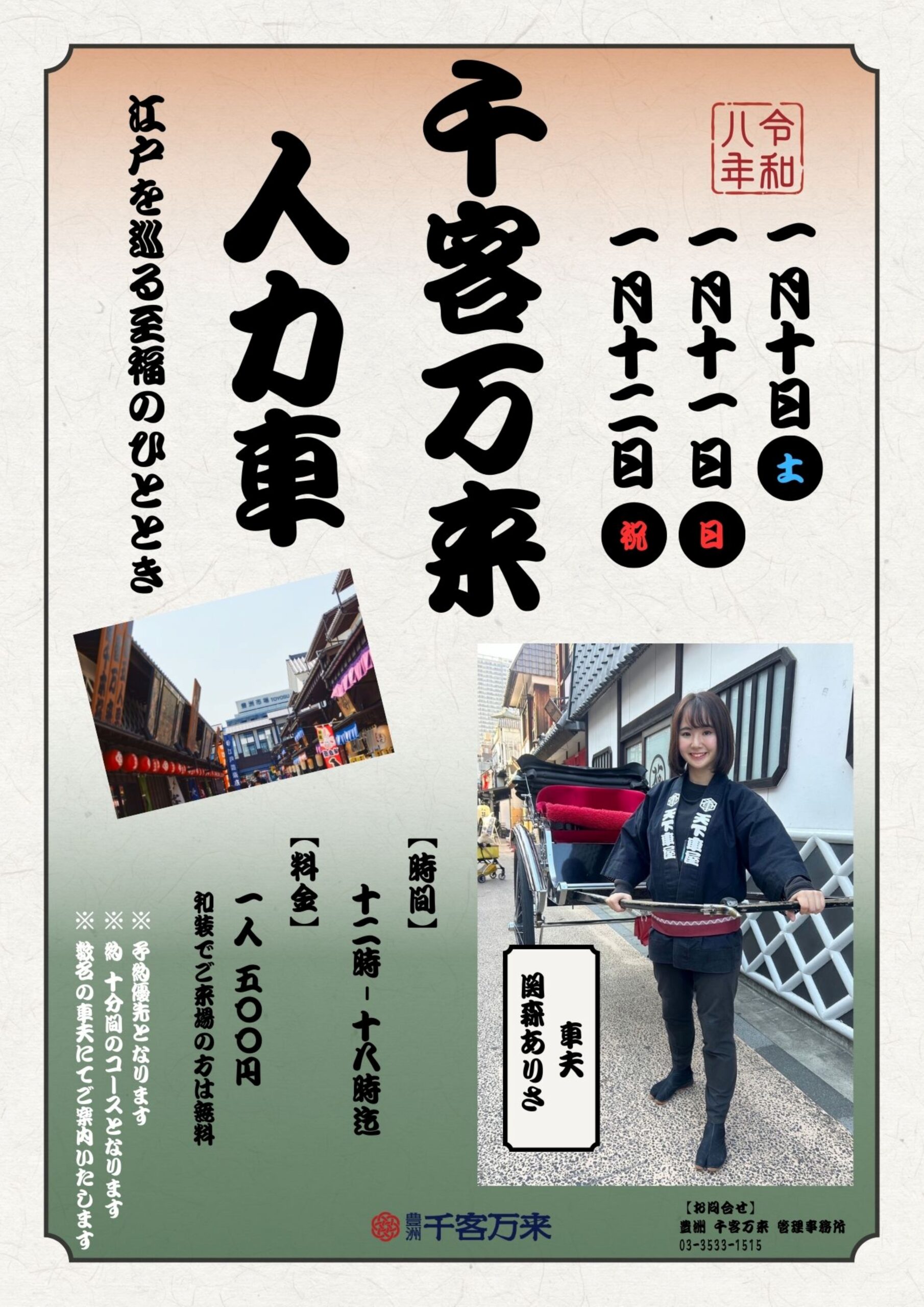 なんと千客万来に人力車がやってきます!