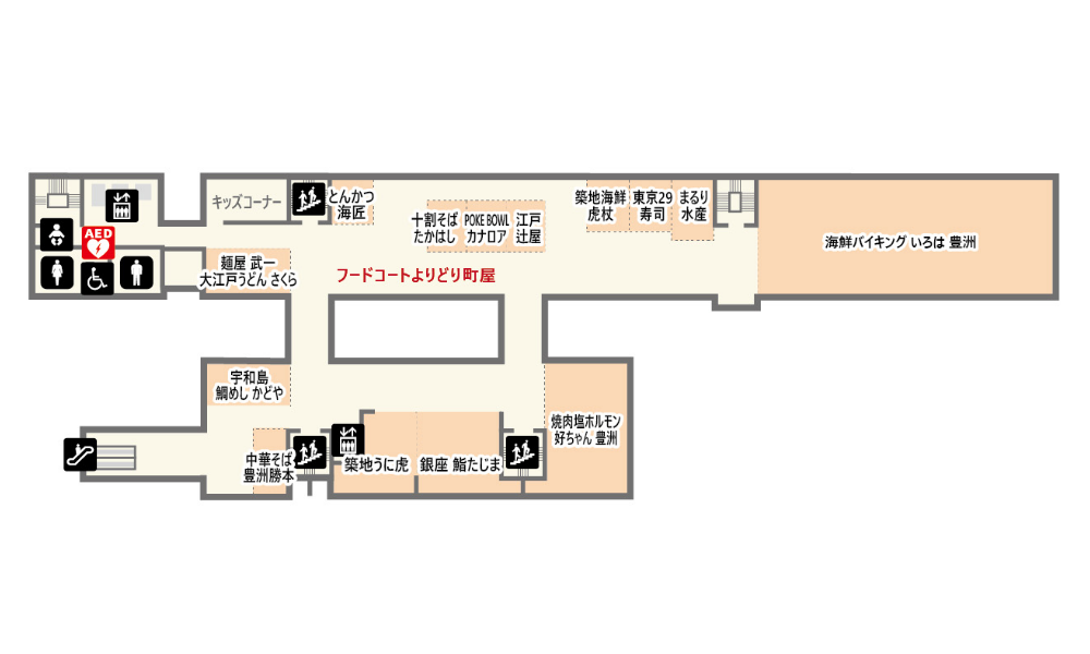<AED所在地> 豊洲 千客万来 B1F・1F・2F・3F
